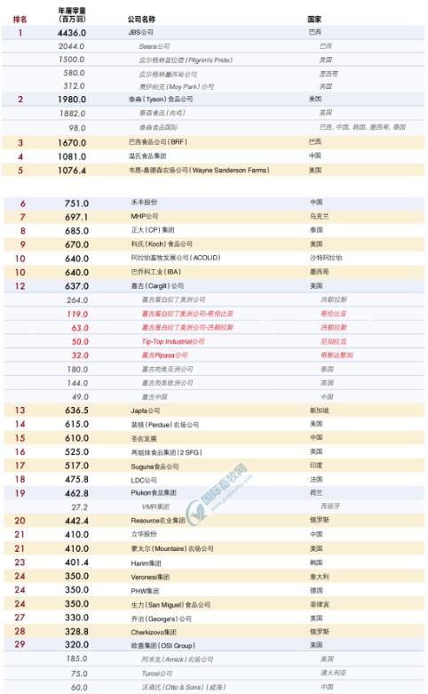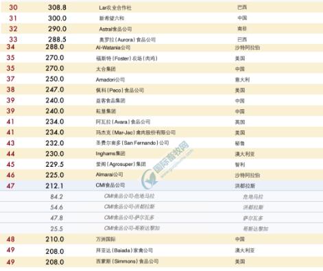 全球前50強肉雞生產商