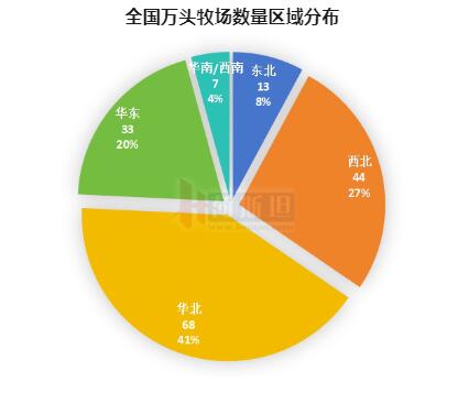 全國(guó)萬(wàn)頭牧場(chǎng)75%分布在“三北”地區(qū),與我國(guó)奶源南北分布吻合。