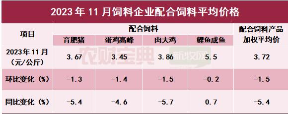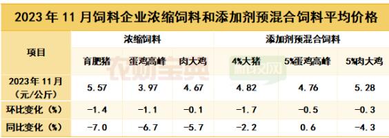 2、濃縮豬料價(jià)格同比下跌7% 11月份,全國(guó)飼料價(jià)格呈下降趨勢(shì)。