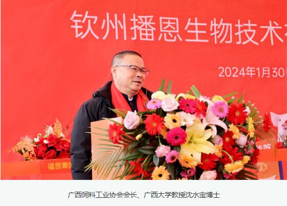 廣西飼料工業(yè)協(xié)會(huì)會(huì)長(zhǎng)、廣西大學(xué)教授沈水寶博士在致辭中提到,民以食為天,飼料產(chǎn)業(yè)是民生產(chǎn)業(yè)和朝陽(yáng)產(chǎn)業(yè),廣西則是飼料工業(yè)發(fā)展的一片熱土,2023年廣西飼料協(xié)會(huì)368個(gè)會(huì)員單位創(chuàng)造了2267萬(wàn)噸飼料產(chǎn)銷(xiāo)量,其中豬料近1500萬(wàn)噸。生物飼料為飼料資源開(kāi)發(fā)利用、節(jié)能減排和老百姓餐桌上肉蛋奶的安全、健康、美味提供新的價(jià)值,欽州播恩的開(kāi)業(yè)為廣西飼料工業(yè)的高質(zhì)量發(fā)展注入了新的活力。