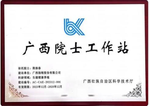 近日,廣西壯族自治區(qū)公布2023年度第四批廣西院士工作站備案名單,揚翔股份申報的“廣西揚翔股份有限公司生豬健康養(yǎng)殖廣西院士工作站”順利通過2023年度廣西壯族自治區(qū)院士工作站備案。