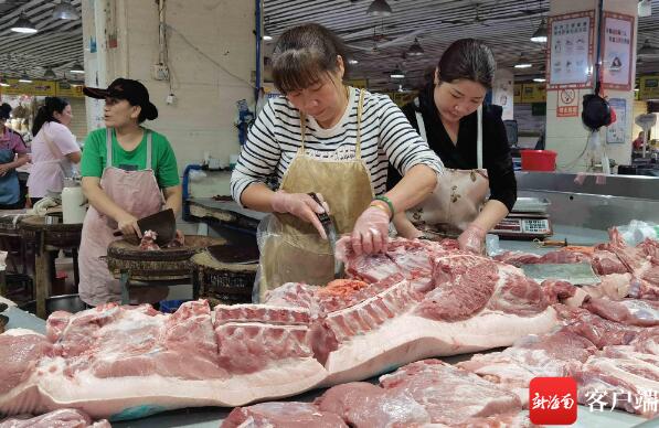 當天下午,記者首先來到位于明珠廣場的旺豪超市明珠店內(nèi),在肉類區(qū)域內(nèi),擺放有豬前腿、里脊肉、后腿肉等豬肉銷售,但記者未發(fā)現(xiàn)有豬頭、豬頸等位置的豬肉銷售?!拔覀冞@邊購進的豬肉均是從羅牛山食品集團有限公司等大廠購進的,進入到超市時只有分成兩塊的凈豬了。”旺豪超市明珠店店長吳育佐告訴記者,凈豬只有軀干位置,豬的頸部以上包括豬頭是沒有的,這么做的目的主要是讓消費者買到合格安全的豬肉。