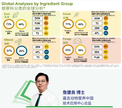 在直播中,史博士介紹了霉菌毒素風(fēng)險原理及嘉吉2023年全球霉菌毒素調(diào)查數(shù)據(jù)概覽。