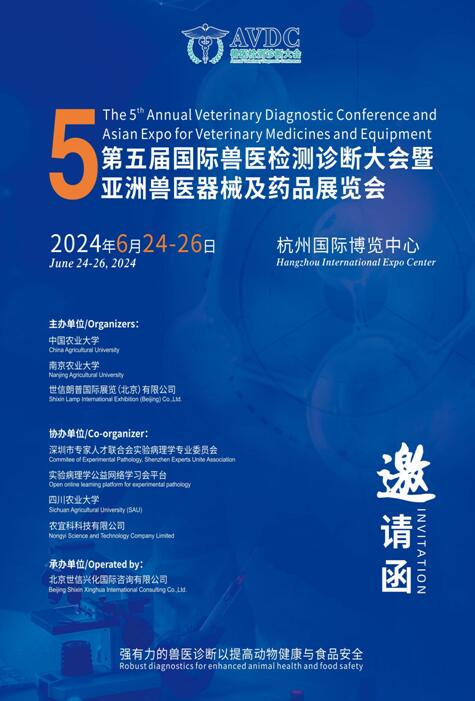 第五屆國際獸醫(yī)檢測診斷大會定于2024年6月24-26日在杭州國際博覽中心舉行,大會將繼續(xù)秉承“強有力的獸醫(yī)診斷,以提高動物健康與食品安全”的辦會宗旨,重點邀請亞、美、歐國家權威獸醫(yī)檢測專家主講,為參會代表帶來全球獸醫(yī)檢測行業(yè)的最新進展,分享診斷病理學、分子診斷、病毒學/血清學、獸醫(yī)檢測的驗證、現(xiàn)場快速檢測、實驗室安全、微生物學、實驗室質量管理等領域的國際最新資訊和研究成果。本屆獸醫(yī)檢測大會參會代表預計超過3500人。