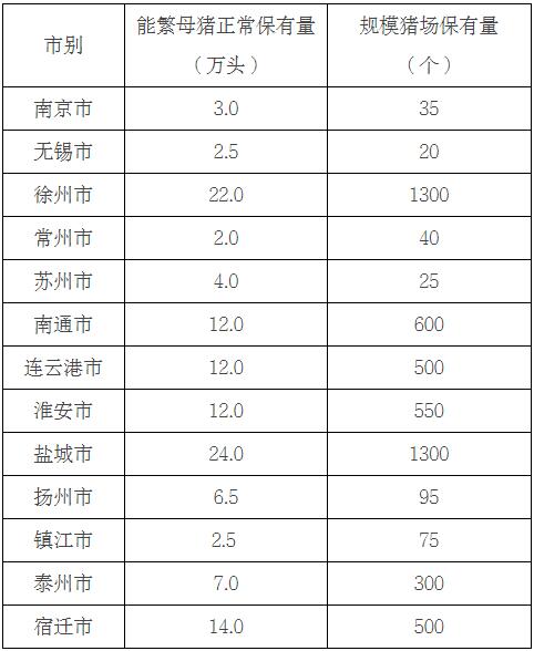 農業(yè)農村部確定我省能繁母豬正常保有量為120萬頭,目標任務保持不變,各設區(qū)市能繁母豬正常保有量不作調整。全省和各設區(qū)市季度末月份能繁母豬存欄量采用國家統(tǒng)計局江蘇調查總隊數(shù)據(jù);非季度末月份,以國家統(tǒng)計局江蘇調查總隊數(shù)據(jù)為基數(shù),根據(jù)省農業(yè)農村廳監(jiān)測的能繁母豬存欄月度環(huán)比變化率測算得出。
