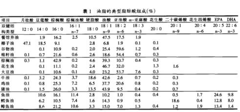1 不同來源的油脂其脂肪酸的構(gòu)成不同