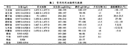 常用飼用油脂理化數(shù)據(jù)見表2。