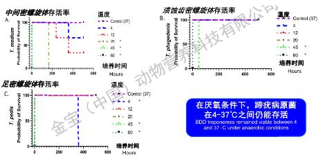 環(huán)境中的病原無(wú)處不在。下圖展示了2023年進(jìn)行的蹄疣病原菌在牧場(chǎng)的存活率研究??梢钥吹?,厭氧條件下蹄疣病原菌在4-37℃之間仍能存活。