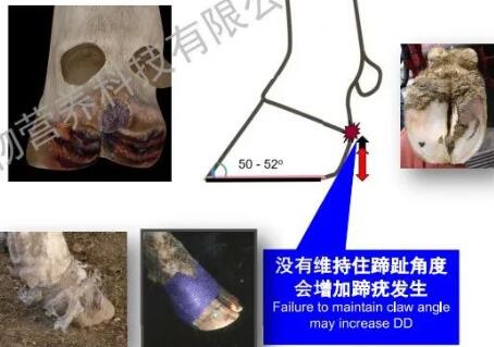 首先,增加蹄趾角度可減少蹄跟暴露,推薦荷斯坦牛蹄角度50度以上。角度越高,意味著離地面距離越高,越不容易接觸到牛糞,衛(wèi)生就會(huì)更好。