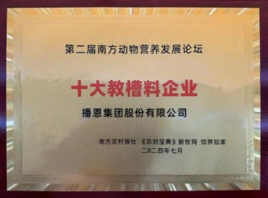 2024年7月14-16日,以“南方問道,融合知新”為主題的2024第二屆南方動物營養(yǎng)發(fā)展論壇在廣西南寧隆重召開。該論壇作為南方地區(qū)規(guī)模大、規(guī)格高、陣容強的動物營養(yǎng)領(lǐng)域盛會,吸引了近700位畜牧水產(chǎn)業(yè)的大咖齊聚。播恩集團(tuán)由欽州播恩總經(jīng)理楊春帶隊參與,并憑借在動物營養(yǎng)領(lǐng)域的卓越表現(xiàn)和優(yōu)質(zhì)的教槽料產(chǎn)品,在此次論壇上獲得了“十大教槽料企業(yè)”榮譽。