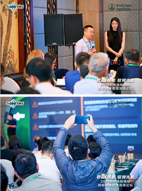 此次,勃林格殷格翰重磅組織策劃了2024勃林格殷格翰智能健康管理高峰論壇,為廣大養(yǎng)豬企業(yè)搭建人工智能技術(shù)應(yīng)用交流平臺。會前,與會嘉賓現(xiàn)場體驗(yàn)SoundTalks®咳嗽管家,聽取豬群聲音片段,判斷SoundTalks®咳嗽管家燈光顏色,感受智能化與生豬養(yǎng)殖碰撞的火花。