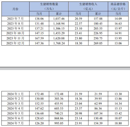 新希望8月7日發(fā)布7月生豬銷售情況簡(jiǎn)報(bào),2024年7月銷售生豬126.20萬頭,環(huán)比變動(dòng)-1.90%,同比變動(dòng)-8.59%;收入為23.91億元,環(huán)比變動(dòng)3.33%,同比變動(dòng)16.12%;商品豬銷售均價(jià)18.80元/公斤,環(huán)比變動(dòng)4.04%,同比變動(dòng)33.43%。