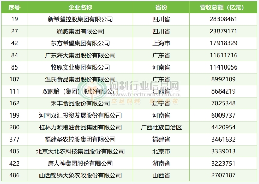 其中,新希望、通威集團(tuán)、東方希望、海大集團(tuán)、牧原集團(tuán)、溫氏食品、雙胞胎、禾豐食品、雙匯發(fā)展、桂林力源、福建圣農(nóng)、大北農(nóng)、唐人神、大象農(nóng)牧等14家農(nóng)牧及農(nóng)牧板塊業(yè)務(wù)有較大影響力的企業(yè)上榜,營收總額約1.5361萬億元。