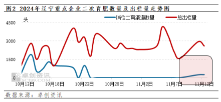 自10月24日開始,遼寧部分重點企業(yè)的生豬出欄量中,銷往二次育肥戶的訂單已消失,出欄走向全部為屠宰端。而在11月11-12日,部分養(yǎng)殖企業(yè)再度出現(xiàn)銷往二次育肥渠道的生豬訂單。價格跌至16元在一定程度上刺激養(yǎng)殖戶再度補欄,且飼料成本較低,二次育肥補欄有一定盈利預期。若二次育肥補欄提升,則對行情有一定支撐作用。