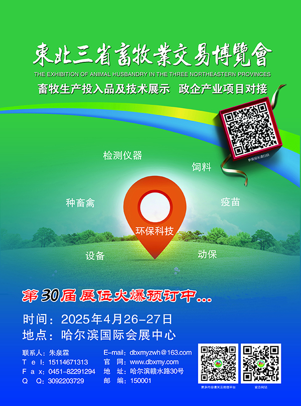 第30屆東北三省畜牧業(yè)交易博覽會(huì)暨第9屆東北(哈爾濱)奶業(yè)博覽會(huì)定于2025年4月26-27日在哈爾濱國(guó)際會(huì)展中心舉辦!