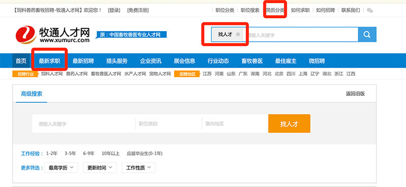 6、已辦理正式會員的企業(yè)用戶在登陸后,有權(quán)限下載查看畜牧人才的具體聯(lián)系方式。步驟為:首頁—簡歷列表,選中某一個求職者簡歷,點擊“查看聯(lián)系方式”按鈕即可。